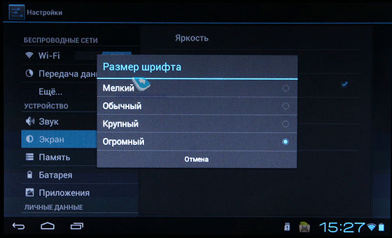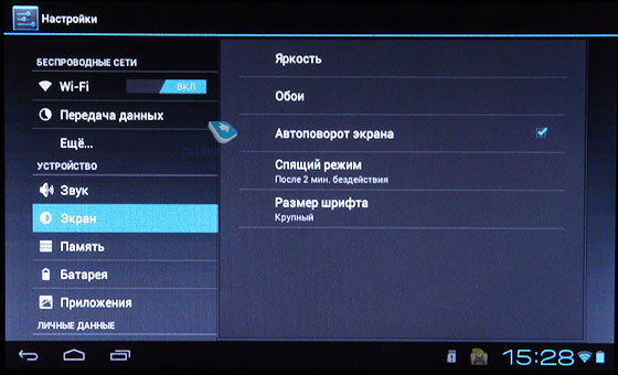 ![]() ![]() К сожалению, от USB Ritmix RMD-520 не заряжается. Для зарядки от сетевого адаптера потребуется около полутора часов. Коммуникационные возможностиВ устройстве присутствует модуль Wi-Fi 802.11 b/g/n, USB 2.0 со скоростью передачи данных до 7 МБ/с + USB-хост «On-the-Go» (в комплекте есть кабель miniUSB на USB). Флешки идут без проблем, кстати, файловая система может быть как FAT32, так и NTFS. ![]() ![]() ![]() ![]() Можно подключать мышки (на экране появляется маленький курсор), клавиатуры и 3G USB-модемы. Список можно скачать, пройдя по этой ссылке. Если используется мобильный интернет, то в настройках лимитируется трафик – особая «фишка» Android 4.0. Беспроводной передачи данных Bluetooth и навигации GPS в этой модели нет – не поддерживает чипсет. Память, карта памятиОперативной памяти в аппарате 512 МБ (DDR3, производитель - Elpida (2 x 256MB)), по умолчанию доступно около 170 МБ. Как мне кажется, для бюджетного планшета вполне достаточно для большинства задач. ![]() Производитель указывает, что внутри находится Flash-память на 8 ГБ (производитель - Micron), но реально доступно для установки приложений только 500 МБ. Есть слот под microSDHC-карту памяти, ее максимальный объем может быть до 32 ГБ. Предусмотрена «горячая» замена. Тестировал планшет с картами от 2 ГБ до 16 ГБ – все было отлично. ![]() ![]() КамераВ Ritmix RMD-520 установлена фронтальная камера на 0,3 МП (на сайте производителя указано, что 1.3, это не так). Особых настроек нет, качество картинки обычно для подобных камер. Камера в Skype работает, изображение транслируется в нормальных цветах, но масштаб видео сильно увеличен: чтобы собеседнику было видно мое лицо, необходимо держать планшет на вытянутой руке. ![]() ![]() ![]() ![]() Skype на другой стороне Характеристики видеоролика: