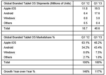 Внеклассное чтение: Статистика первого квартала – телефоны, планшеты, смартфоныПосле того, как большинство компаний отчитались о своих продажах, появились отчеты исследовательских компаний, в которых они приводят свои данные о продажах тех или иных устройств. Например, в Strategy Analytics описали рынок планшетов за первый квартал, и картинка получилась следующей.