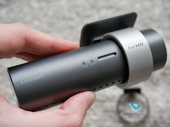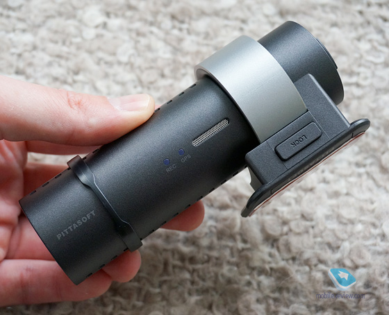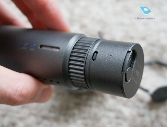 Дизайн, конструкцияБольше всего эта штука напоминает цилиндр, крепление из пластика, на нижней стороне клейкая пленка, оптимально оставить его где-то под зеркалом заднего вида. Из крепления DR500 легко вытащить, во время движения из гнезда не выскакивает. Это большой плюс, оставлять такую вещь на ночь в машине не рекомендую. На торце — сдвижная крышка, под ней — слот для карты памяти, разъем для подключения кабеля. Не рассчитывайте на встроенный аккумулятор, прикуриватель будет занят. На другом торце — световые индикаторы, рядом с разъемом для кабеля — кнопки включения Wi-Fi и включения устройства. Индикатор выглядит неплохо. Регистратор бывает двух цветов, белый и темно-серый, мне больше нравится последний. Размеры составляют 36 х 118 мм, вес — 114 грамм. Качество сборки и дизайн в целом неплохи, но ведь не это главное для такого устройства, верно?