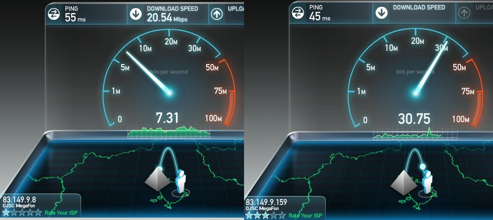 Не мудрствуя лукаво, для тестов подключил на свою симку пакет «Интернет XS» с поддержкой 4G и суточным лимитом полноскоростного трафика в 70 МБ. При подключении почему-то сперва пришла SMS о том, что я свои 70 МБ уже съел и не пора ли прикупить продление? И уже через несколько минут SMS об успешном подключении. Заодно прислали полезную команду уточнения объема остатка трафика, пользуйтесь на здоровье. Ограничение работает забавно, это да. Включается, действует час-полтора, затем отключается и больше не докучает своими 64 Кбит/с. Наверное, временный глюк или попал как раз на период настройки где-то и чего-то, но пришлось весьма кстати, погонял роутер. Впечатления от работыРезультат в 4G около 20 Мбит/с вниз и 7 Мбит/с вверх можно считать неплохим, см. скриншот выше. Не бог весть как шустро, но для мобильного роутера неплохо. И вполне стабильно, хоть скорость порой и падала до 8-9 Мбит/с. «На ощупь» при обычной работе в интернете я замираний и потери отзывчивости не замечал. Конечно, по сравнению с 3G ощущения совсем другие, по отклику 4G больше напоминает проводной доступ. Больше 21 Мбит/с ни разу не видел и на всякий случай решил проверить, не заложено ли такое ограничение в тарифе. Похоже, что не заложено, так как в модеме эта же SIM-карта показала скорость ближе к 30 Мбит/с.
