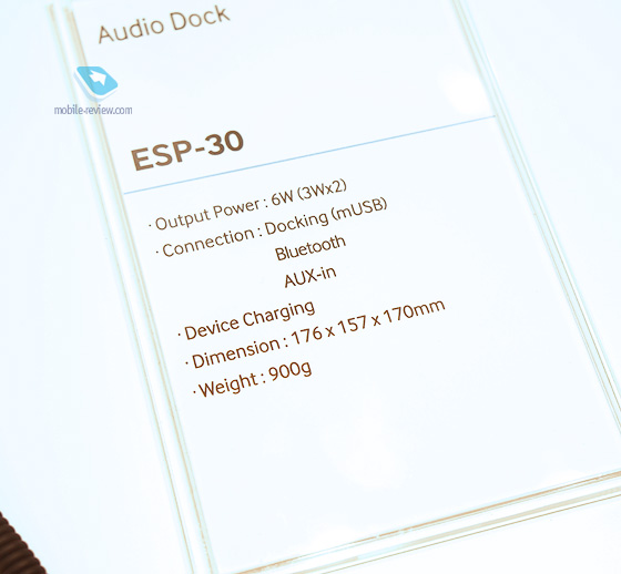 Колонка-док ESP-30Интересная колонка в формате шара. Выглядит очень красиво. Может заряжать смартфон, подключение происходит по Bluetooth или коннектору. На данный момент поддерживается только Note II и Galaxy S3. Ориентировочная цена – 120 евро.