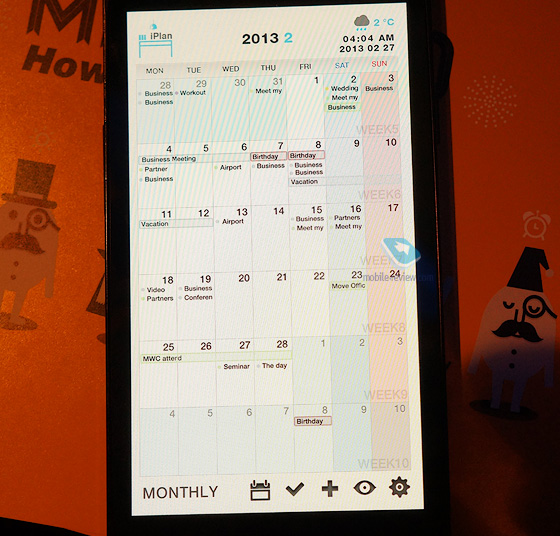 Строка состояния. Лично мне она показалась очень красивой и функциональной, хотя некоторые коллеги-журналисты были со мной не согласны. В строке состояния можно быстро изменить яркость, перейти к настройкам, просмотреть список доступных Wi-Fi сетей, сменить трек в музыкальном плеере или открыть браузер. Честно говоря, я не совсем понял, как работает строка состояния, так как на других образцах были только ползунок яркости и настройки Wi-Fi, остальных “виджетов” не было. Календарь. Красивое приложение с большим количеством помещающейся информации.