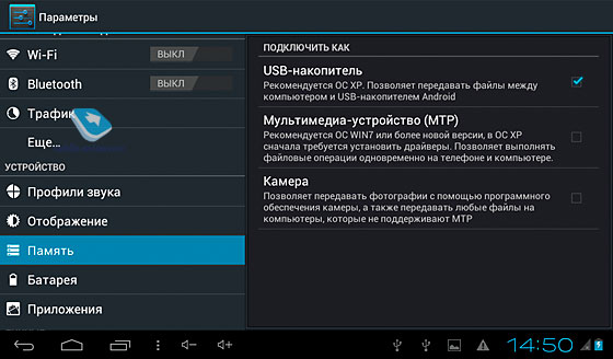 В Perfeo делают ставку на режим USB-хост, каждое устройство имеет в комплекте нужный для этого кабель, можно подключать и флешки, и жесткие диски, и клавиатуры. Я попробовал подключить свою флешку, никаких проблем не возникло. Так что имейте этот момент в виду. КамераКак мне кажется, уж лучше бы поставили одну камеру, чем две такие - фронтальная 0,3 Мп, основная 2 Мп, фотографии получаются страшные, проще не пользоваться совсем. Время работыЕмкость аккумулятора 3000 мАч, но работает устройство как и любой другой планшет с Android - при активном использовании можно дотянуть до вечера, но только Wi-Fi лучше выключить, убавить яркость и провести все остальные нужные мероприятия. Пробовал читать книгу, все выключив и убавив, заряда хватило на пару дней.
