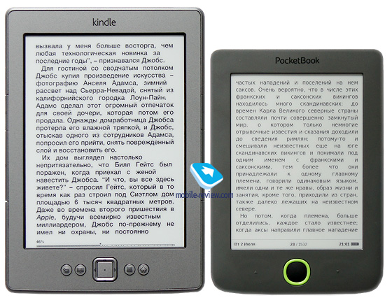 На стороне PocketBook 515 в данном сравнении несколько факторов. Первый – известность бренда, все-таки PocketBook - один из лидеров рынка электронных книг, если говорить о России, СНГ, Европе. Многие предпочитают покупать вещи от известных в своей области компаний - этот фактор может сыграть решающую роль. Второй – в отличие от B-брендов, в книжках которых часто бывают проблемы с софтом и общей стабильностью, а также скоростью работы, книги от PocketBook в этом смысле более предсказуемы и стабильны. Конечно, и у PB могут быть проблемы, но серьезные глюки или зависания при большом числе загруженных книжек – едва ли. Отсюда вывод – у PocketBook получилась хорошая компактная книжка, приятная с точки зрения внешнего вида, в добротном корпусе, с неплохим экраном, отличным софтом, с удобной библиотекой и приемлемой скоростью работы, а главное, по адекватной цене. Артем Лутфуллин (artem@mobile-review.com) Поделиться: Мы в социальных сетях: Есть, что добавить?! Пишите... eldar@mobile-review.com