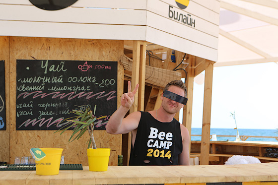 В этом году из названия выкинули слово Kite и оставили только BeeCamp, но суть осталась ровно той же. На косе со связью не очень хорошо, там стоит передвижная станция от Билайн, которая не справляется с наплывом людей. В разных точках лагеря сигнал гуляет, и местный житель рассказал о ноу-хау, которое они придумали. Нашли место, где сигнал наилучший, оно на высоте нескольких метров, сделали своего рода авоську и флагшток, на который торжественно поднимали ноутбук с модемом, передающим данные. Это был гарантированный вариант получить наибольшую скорость. Жаль, но сейчас эту конструкцию разобрали за ненадобностью, так как приехала та самая станция Билайн. Плюс, появился магазинчик связи, все культурно и красиво.