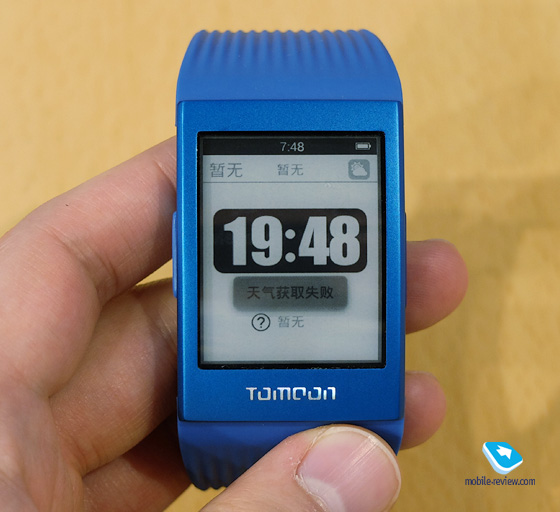 Умеют показывать время и одну из заставок. Время работы не должно удивлять, это не «умные часы», а самые обыкновенные, просто вместо циферблата или электронного дисплея здесь используется e-ink. В Японии стоят от 6 000 рублей (примерно). Посмотреть на варианты часов можно здесь. Tomoon T-Fire Smart WatchЕще одни уже выпущенные часы, на этот раз именно «умные». Резиновый браслет, несколько цветов на выбор, относительно крупный дисплей e-ink mobius. Работают часы под управлением Android 4.3, внутри 1 ГГц процессор, 512 МБ оперативной памяти и 4 ГБ флеш-памяти. Диагональ экрана 1.7'', разрешение 320x240 точек, дисплей сенсорный. Заявленное время работы от аккумулятора (200 мАч) — 10 дней. В реальности, конечно, едва ли часы столько проработают в активном режиме.