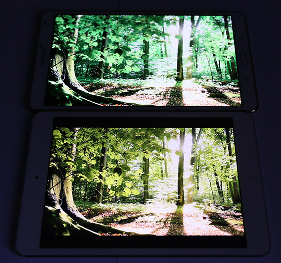 Сравнение экранов в Galaxy Tab S и Apple iPad – кто выигрывает и почемуВ планшетах сложно переоценить значение экрана, от его качества зависит, насколько комфортно вам будет читать, смотреть фильмы или странички в сети, показывать свои фотографии друзьям и коллегам. Экран смело можно назвать одним из основных компонентов планшета или телефона, именно на него мы смотрим десятки минут ежедневно, а кто-то даже проводит за ним часы. Компания Apple одной из первых использовала экран как маркетинговое преимущество и запустила торговую марку Retina, этот термин обозначает дисплеи высокого разрешения. К сожалению, у Apple отсутствуют собственные технологии производства экранов, компания вынуждена покупать дисплеи у других компаний, в том числе и прямых конкурентов, например, Samsung. Получить на открытом рынке в достаточных объемах новейшие типы экранов, самые последние разработки Apple не может. Например, в Samsung оставляют такие разработки только для собственных продуктов, не продают их на сторону. Складывается интересная ситуация: в iPad ставят не самые лучшие экраны, матрицы, в которых не воплощены самые последние технологии, и, как следствие, они не так комфортны в повседневном использовании. Так это или нет, давайте посмотрим вместе в сравнении экранов на таких продуктах, как Samsung Galaxy Tab 8.4 и iPad Mini with Retina. Для простоты разделим материал на три части – начнем со сравнения характеристик, затем посмотрим на отличия в настройках экранов и их возможностях для пользователей, а завершим отзывом профессионалов о качестве технологий и экранов. Содержание: