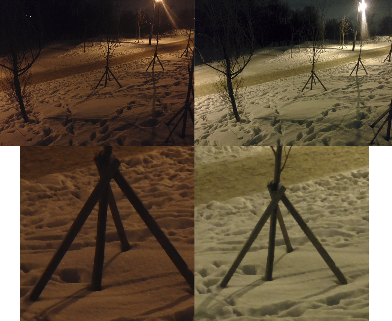 фото с ifixit.com Эффективность оптической стабилизации не очень высокая, да и практически толку очень мало. Например, можно было бы реализовать «длинные» выдержки (1/2, 1/3 секунды), но их здесь нет. Частично OIS помогает, но в большинстве ситуаций работа заметна только в режиме видео, да и то некоторые устройства стабилизируют электронным путем намного лучше (типа Sony Xperia Z1). Если говорить о качестве фотографии в обычном режиме, то снимает Nexus 5 хорошо, на уровне любого Android-смарта дороже 15 000 рублей. Впрочем, именно эта модель устройства оборудована софтовой штукой под названием «HDR+». Это не просто HDR – вытягивание темных участков и затемнение ярких – а целая технология получения классного снимка. HDR+ можно и нужно сравнивать с приложением Cortex на iOS. Обе функции делают несколько кадров, анализируют фотографии и склеивают в одно целое. В итоге получается чистый бесшумный снимок высокого качества. Однако, если Cortex это делает до 4 секунд, то HDR+ хватает 1-2 секунды, а то и меньше (все зависит от уровня освещения). Ниже – снимки на iPhone 5 и Nexus 5 (справа). С балансом белого у «Нексуса» все отлично, чего не скажешь о фото на iPhone. Еще ниже – сравнение фото на Sony Xperia Z1 (ручной режим), iPhone 5 (по центру, Cortex) и Nexus 5 (режим HDR+). В данном случае чище фотографии вышли на iPhone 5, да и резкость повыше. Кроме того, я сравнил кадры, снятые на LG G2, Samsung Galaxy S4 и Nexus 5, в недостаточных условиях освещения: На мой взгляд, на фото SGS4 многовато артефактов, на фото Nexus 5 заметны шумы, а LG G2 применил сильную «чистку», поэтому снимок получился несколько мыльный. Следующий кадр снят возле окна: Опять же, на мой взгляд, лучше получилось передать цвет и контраст у Nexus 5, потом LG G2, и замыкает Galaxy S4. Детализация (можно ее назвать резкостью) чуть выше на кадре от Nexus 5. Nexus 5 против Samsung Galaxy Note 3 – на ваш суд. Неприятной особенностью камеры Nexus 5 может стать розовое пятно как в фото, так и в видеорежимах. Видео 5-ка снимает в разрешении FullHD 30 к/с вне зависимости от уровня освещения. Качество хорошее, присутствует стабилизация, звук – моно (очень странно, учитывая второй микрофон), чистый, без перегрузов. Есть автоматическая фокусировка. В заключение данного раздела хотелось бы сказать, что фотокамера на Nexus 5 с режимом HDR+ на данный момент у меня в приоритете, лучше снимает, пожалуй, только Nokia 1020 или Samsung Note 3. Описывать интерфейс не стану, поскольку он до предела прост.