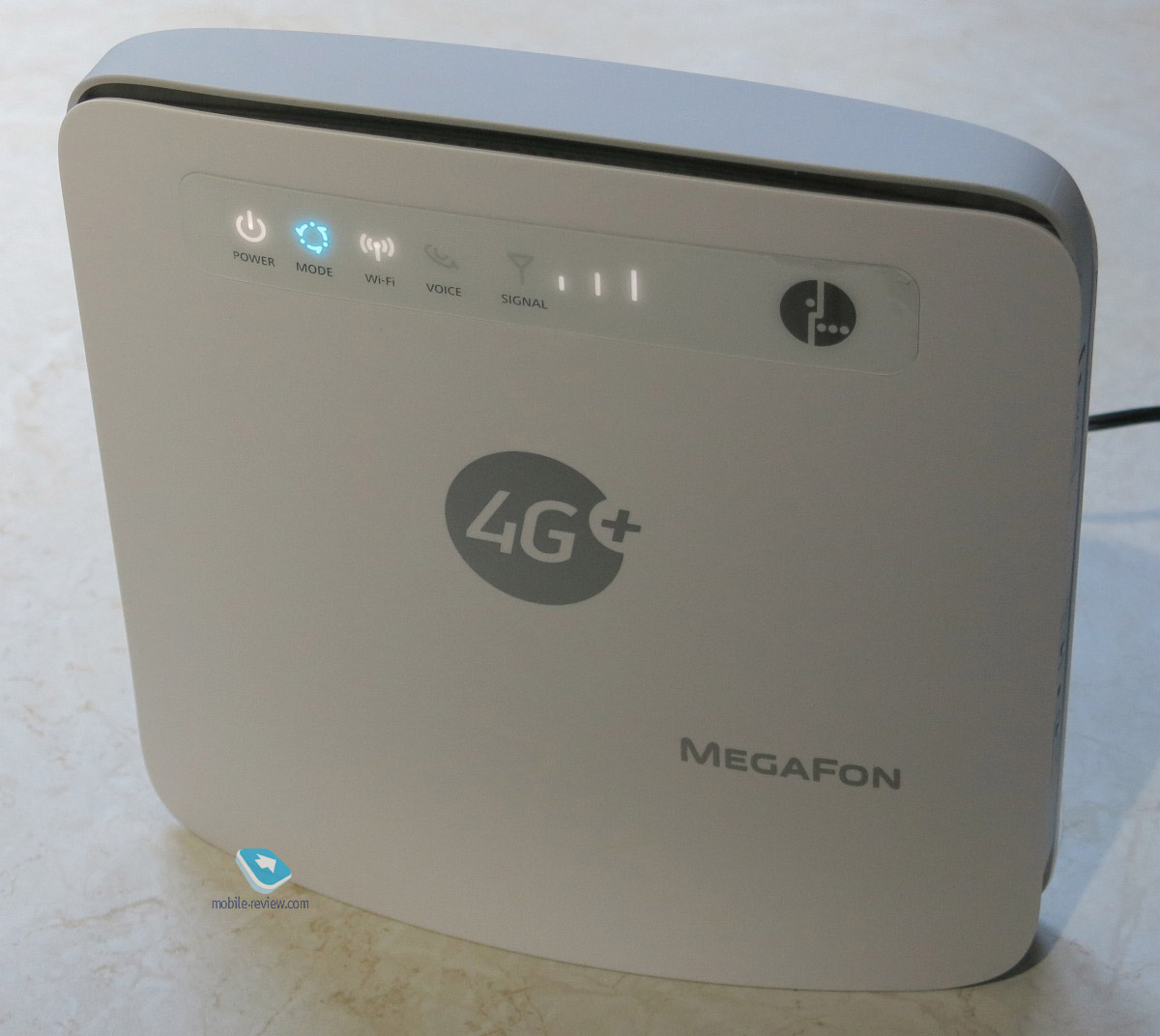 В дизайне ничего особо выдающегося, я бы назвал нейтрально-офисным. Но конструктивно выполнен интересно, передняя и задняя панели симметрично выгнуты в разные стороны. Получился необходимый дополнительный объём в нижней части и одновременно устойчивые «ножки». Цвет белый со светло-серыми боковинами, опять-таки нейтральнее не бывает. Ничего не торчит и не выступает, цвета индикаторов мягкие. Внешне роутер может нравиться или не генерировать эмоций вообще, но вызывать раздражение точно не будет. Габариты – 191x197x62 мм, но места на столе или подоконнике занимает немного. Дополнительно почитать об устройстве можно на сайте интернет-магазина МегаФон. КонструкцияНа передней панели – только индикаторы, вся коммутационная часть вынесена на заднюю. И правильно, чтобы провода глаза не мозолили. Габариты устройства, насколько я понимаю, определяют большие антенны MIMO, которые действительно работают отлично.