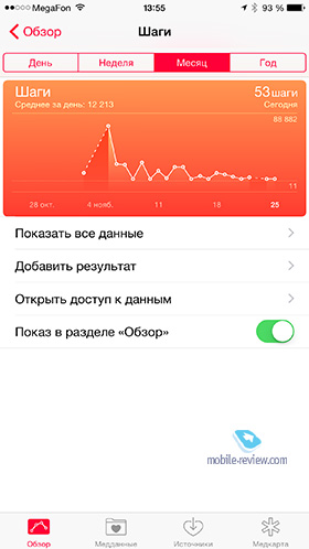 Другая проблема, появившаяся у меня, связана со встроенным приложением Health. Если вы помните, в обзоре iOS8 я очень нахваливал это приложение и радовался такому классному ходу в виде экспорта, объединения и дальнейшего предоставления информации сторонним программам всей нужной информации. Я по-прежнему считаю появление Health серьезным плюсом iOS8, однако при переходе с iPhone 5s на iPhone 6 и дальнейшем переходе на 6 Plus я не смог перенести свою информацию, хранящуюся в Health, и это несмотря на то, что делал полную резервную копию аппарата перед сбросом. Почти месяц собранной информации просто исчез, вернуть удалось только часть данных, хранящихся в Health Mate.