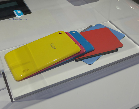 Как вы понимаете, я хочу сэкономить ваше время и не буду рассказывать отдельно о каждой модели, скажу только, что смартфоны из серии Pop все как один с поддержкой LTE, а смартфоны на Firefox OS пока не продаются, но вот-вот поступят в продажу. Большинство смартфонов объединяет платформа MTK, 1 ГБ оперативной памяти и 4, 8 или 16 встроенной, плюс слот под карту памяти. Экраны в устройствах качественные. Даже в, казалось бы, не самых важных для компании моделях на базе Firefox OS использованы хорошие матрицы с отличными углами обзора, достойным запасом яркости и натуральной цветопередачей. Кстати, в Alcatel есть почти такой же аксессуар, как у HTC (mini+, обзор) - небольшой телефончик, выполняющий роль гарнитуры и пульта управления.
