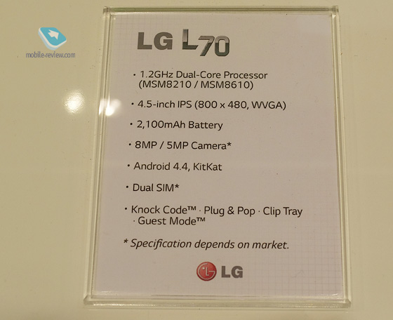LG L90 В целом, новинки от LG для MWC 2014 оказались вполне ожидаемыми, компания показала несколько моделей и обновила серию недорогих смартфонов. Ситуация с LG сегодня напоминает ситуация с Samsung много лет назад. Когда корейская Samsung только-только пробивалась на рынок телефонов, все говорили о том, что с таким дизайном, цветастыми меню и пластиком компания далеко не уедет и что им ничего не светит. Прошли годы — Samsung выпускает смартфоны из глянцевого пластика с яркими экранами и цветастыми меню и является лидером рынка. LG набирает обороты, и доля компании постепенно растет, при этом многие смотрят на те же аппараты из линейки L-Series и удивляются, кто же покупает эти устройства — однако же их покупают, и сама линейка очень успешна. Медленно, но верно вслед за Samsung ее основной конкурент, LG, наращивает обороты. Ссылки по теме