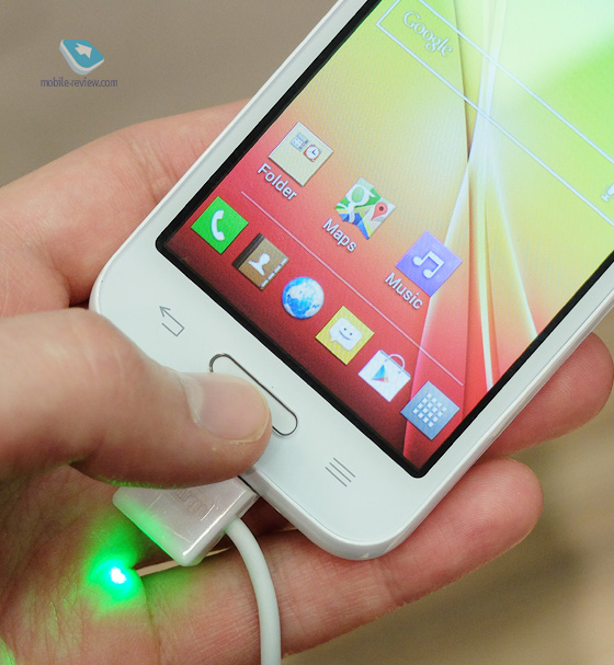 Не знаю, нужно ли говорить о дизайне применительно к лопатам в принципе и применительно к лопате от LG – наверное, нет. Корпус из пластика с узором, кнопки питания и громкости на «спинке», как в LG G2 и в LG G2 mini. Емкость аккумулятора – 3200 мАч. Есть поддержка LTE.