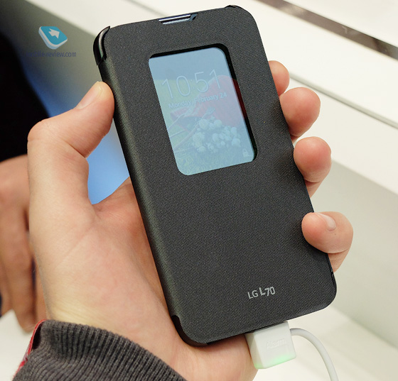Помимо смартфона были продемонстрированы и аксессуары для него, в частности, чехол с окошком.