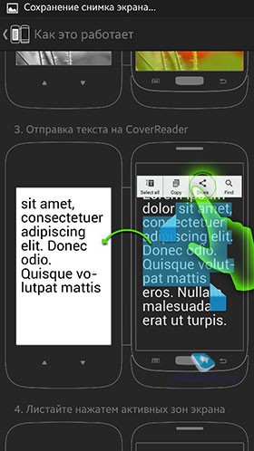 «Перекидывание» книжки со смартфона на чехол происходит при помощи программы PocketBook Reader. Ее нужно установить на смартфон и загрузить далее в приложение «Нужные книги». После подключения чехла к смартфону в меню появится пункт отправки картинок или книг на CoverReader. Соответственно, читать на CoverReader можно не только книги, загруженные в PocketBook Reader, но и любые тексты со смартфона, будь то какая-то статья на сайте в браузере, документ, заметка или большое письмо, словом, любую текстовую информацию вы можете отправить для чтения на чехле-экране.