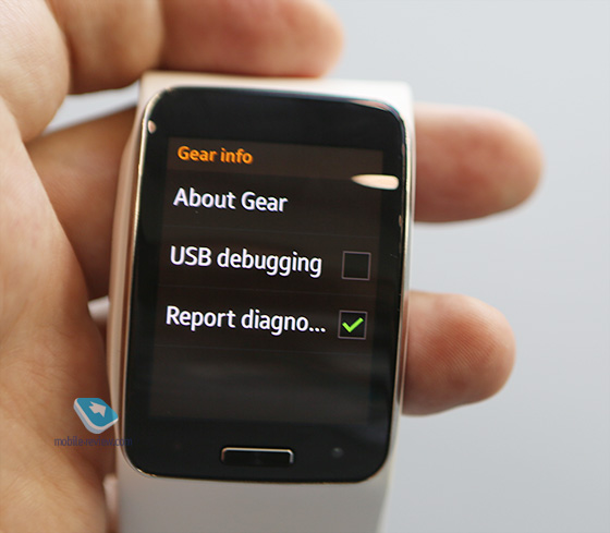 Присутствуют гироскоп и датчик ускорения, поэтому они активируются в момент, когда вы вскидываете руку, чтобы посмотреть время. В нашем видео видно, что это происходит не моментально, а с небольшой задержкой. Активировать часы постукиванием по экрану нельзя – так сделано в ряде конкурирующих моделей. Соединение с телефоном происходит с помощью Bluetooth (версия 4.1), при этом часы умеют работать только с одним телефоном. Для того, чтобы привязать их куда-то еще, необходимо сбросить все данные. Это можно считать серьезным недостатком, так как одновременно использовать часы с планшетом и телефоном не получится. А это вполне распространенный сценарий. Менеджер Gear на телефоне – настройки и приложенияДля того, чтобы использовать часы, вам необходимо связать их с вашим устройством (телефон или планшет). В магазине приложений Samsung Apps надо загрузить Gear Manager и далее следовать подсказкам на экране часов или телефона. В Gear Manager можно настроить ваши предпочтения, выбрать дополнительные программы, которые устанавливаются на часы. Удобный интерфейс для настроек, так как на часах это делать не так просто и легко вследствие небольшого размера экрана. Из приятных неожиданностей — архивация всех ваших настроек, то есть, обнулив часы, вы автоматически получите снова все настройки, не нужно будет проделывать второй раз эту работу. Из того, что стоит сделать в первую очередь, это разобрать порядок функций и их следования в меню, так будет проще и быстрее управлять часами. Описывать все возможности менеджера не буду. Стоит выбрать программу, которая будет запускаться при двойном нажатии на центральную клавишу. Интерфейс часов – управление и работа с нимиВскидываете руку, и часы на 7 секунд включают экран, на котором по умолчанию отображаются время, дата и погода или просто циферблат, который вы выбрали. Время подсветки можно изменить на большее, тогда и расход аккумулятора будет больше. Также вы можете выбрать различные циферблаты или часы с иконками приложений либо с шагомером.