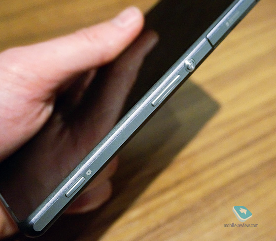 Да, пленки убрали и спереди, и сзади. Две пластины из закаленного стекла прикрывают раму из металла, двойное анодирование – обратите внимание на цвет металлической детали, серебристый на торце и черный рядом. Сверху – разъем 3,5 мм, под заглушками на торцах – разъемы microSD, SIM-карты (микро), microUSB для зарядки и синхронизации. Естественно, поддерживается MHL, можно подключать разную периферию, от компактных проекторов до телевизоров. Немного изменили собственно торцы, аппарат иначе лежит в руке. И он стал легче! При том, что здесь больше экран. Но вес не удручающе легкий, нет, все равно понимаешь, что в руке качественная штука, баланс подобран отлично. Что-то неуловимо изменилось – и в лучшую сторону.