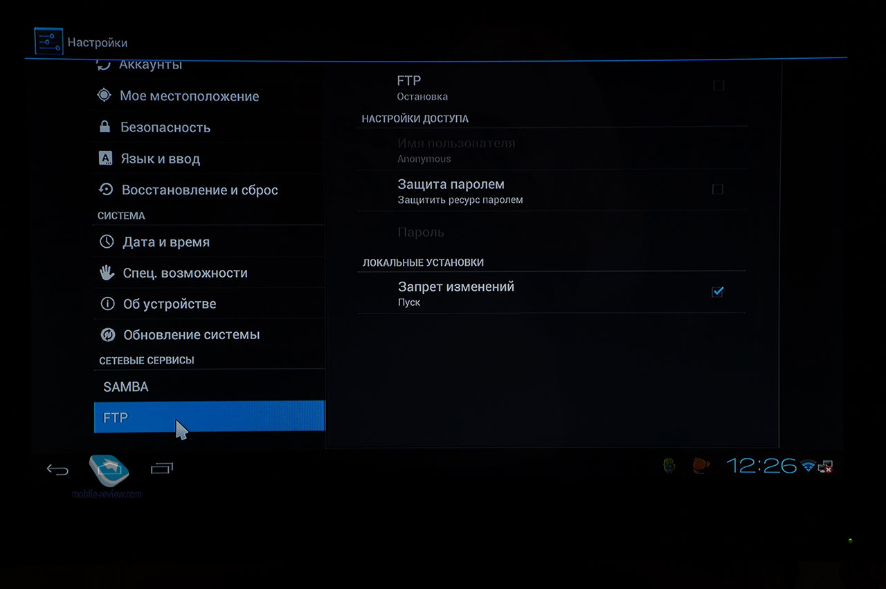 Более подробно написано на сайте производителя. От себя могу добавить, что устройство работает небыстро, на многие действия приходится ожидать отклика, даже если это простейшие перемещения по меню, вкладкам и так далее. С тяжелыми интернет-страницами аппарат впадает в «спячку» и с огромным трудом отображает даже часть информации. Например, вот эту страницу Tivion не смог корректно открыть. С игрушками примерно такая же ситуация, несмотря на то, что графический ускоритель не самый худший, что можно было использовать в данном аппарате. Однако в простые игры можно «рубиться» без проблем — Angry Birds, Flappy Bird, Cut the Rope и аналогичные. Другой вопрос, что если игра не поддерживает управление мышкой, то и поиграть не получится. Например, с Angry Birds идет без проблем, а вот в Robokop не получается кликать на кнопки подтверждения. Как вариант, попробовать использовать какой-нибудь специальный манипулятор, джойстик или клавиатуру. Оперативной памяти в Tivion 1 ГБ, свободно в среднем около 400 МБ. Для хранения различных данных отведено примерно 2.8 ГБ: 1.4 на установку программ и примерно столько же на складирование всякой всячины. Поскольку Смарт-ТВ оснащен Wi-Fi, то аппарат может работать с сетевыми сервисами Samba и FTP. Операционная система — Google Android версии 4.0.3. Не самая актуальная, но для подобных устройств практически нет смысла иметь что-то более новое. Хотя, конечно, приятней видеть циферки 4.3 или 4.4. Обновление ПО происходит не «по воздуху», а при помощи специального файла, «залитого» либо во внутреннюю память, либо на любой носитель информации. Далее запустить настройки и выбрать «Обновление системы». Пользовательский интерфейсПосле того, как вы подсоединили все необходимые кабели и провода, включаем приставку. На экране ТВ появляется логотип. Загрузка длится довольно долго — около 2-х минут. Откровенно говоря, по моему мнению, подобные штуковины должны включаться если не сразу, то за несколько секунд. Даже простейшие Android-смартфоны включаются значительно шустрее. После запуска на экране отобразится рабочий стол. К сожалению, я не смог найти приложения, которые делали бы скриншоты (они запускались, но вылетали с ошибкой), поэтому пришлось фотографировать экран. Снизу — восемь иконок: Избранное. Из названия понятно, что тут находятся иконки приложений наиболее часто запускаемых программ. Приложение. Не нуждается в описании. Чтобы из приложений добавить иконку в «Избранное», необходимо пиктограмму перетащить в правый верхний угол. Игры. Интернет. Обычный браузер Android. Кино. Запускается сервис ivi. Детям. Запускается сервис ivi для детей. Музыка. Запускается сервис ivi с разделом «Музыка». Настройки. Обычные настройки Android. Слева сверху находятся часы с датой, справа — виджеты погоды, пробок (зачем?) и уровня приема сигнала Wi-Fi. Нижний бар с кнопками «Назад», «Домой» и списком запущенных приложений можно скрывать. Настраивается в «Настройках». Перечислять установленные программы не стану, поскольку они не являются эксклюзивами и доступны в Play Market бесплатно. В настройках есть пункт «Экран», содержащий важные параметры: