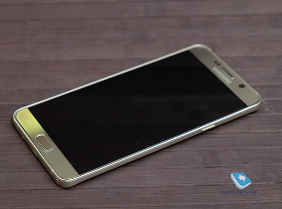 При желании в дизайне нового Samsung Galaxy Note 5 можно угадать даже некоторые детали из самого первого «ноута», и это, как мне кажется, хорошо. Компания уже несколько раз обновляла Note внешне, при этом стараясь сохранять некоторые общие черты и узнаваемость линейки. В основе Samsung Galaxy Note 5 лежит шасси из прочного алюминия семитысячной серии, снаружи металл обрамляет устройство по периметру. Фронтальная и обратная поверхности выполнены из закаленного стекла Gorilla Glass 4, оно не царапается, а любые отпечатки легко удаляются. На фронтальной стороне также есть качественное олеофобное покрытие, за счет чего палец легко скользит по поверхности дисплея. Обратная сторона корпуса изогнута ближе к краям. Благодаря такому решению смартфон немного удобнее ложится в руку, и здесь это действительно играет роль. По габаритам Samsung Galaxy Note 5, мягко говоря, немаленький, так что любая деталь, делающая его немного удобнее в руках, важна. Смартфон производят в четырех цветовых решениях: белый, серебристый, золотой и черный. Последние две версии представлены в России, и в оригинале названия у моделей более поэтичные, чем я написал выше. Аппарат золотого цвета называется «ослепительная платина», а черного – «черный сапфир». Оба цвета, на мой взгляд, удачные. В случае с Samsung Galaxy Note 5 в золотистом исполнении компания не стала перегибать палку и выбрала неяркие тона, за счет чего устройство смотрится благородно и не вычурно.