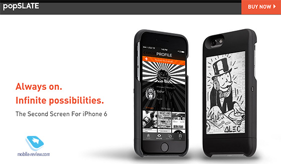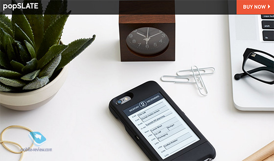 В обложке popSlate реализована старая идея небольшого стартапа – сделать второй экран для iPhone, на котором показывать различную информацию. Смешно, что в Yota Devices это реализовали давно и ко второму поколению сделали уже даже сенсорный экран, на котором можно читать, играть, листать странички – одним словом, не только видеть картинку, но и взаимодействовать с ней. Открываем коробочку и внутри видим чехол. Специально не поленился и поискал имена создателей этого кондового дизайна, они точно не обучались на фабрике «Красный богатырь» и не проходили практику на ивановском предприятии «Серп и Молот». Но корни советского промышленного дизайна угадываются легко: страшненький пластик, уродливые формы, и в довершение всего надо вставить в этого уродца красивый iPhone 6.