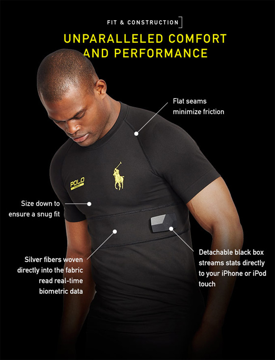 Майка имеет ткань, выступающую как датчик, он может измерять сердечный ритм, частоту дыхания, шаги, уровень активности, как результат, подсчитывать сожженные калории. В ткань встроен трехмерный акселерометр, который подсчитывает часть этих данных. А теперь грустная часть истории - черная коробочка нужна для того, чтобы передавать данные на iPhone, iPod. Так говорит производитель в рекламных материалах. Не поленился позвонить в Ralph Lauren, чтобы уточнить один момент - будет ли майка считать мои шаги, активность без установленной черной коробочки. Оказалось, что не будет. То есть, в любом случае вам нужно установить на майку этот блок. Быть может, особая точность измерений компенсирует этот недостаток? В материалах указывается, что точность не гарантируется, она также зависит от того, кто использует майку. Например, отдельно указывается, что это должен быть взрослый мужчина. Насколько взрослый? Какой комплекции? Есть еще один любопытный момент: чтобы повысить точность распознавания сигналов от нитей, майка сделана очень плотной, она сильно обтягивает корпус человека. Возможно, атлетам это покажется не очень удобным. Недостатков у этой майки слишком много, чтобы прочить ей какую-то революцию, это типичный PR-продукт, и таковым она и останется. Сложно представить человека, что купит 3-4 майки и будет менять их в течение недели, когда тренируется. Цена вполне сравнима со спортивными компьютерами, что дают те же данные или даже большее их количество и их можно использовать во всех видах спорта, тут серьезное ограничение (контактные виды спорта - нет, связанные с водой - нет, а как потеть в такой майке?).