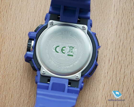 Цвета хорошие, если бы была возможность выбирать, я бы остановился на простой черной модели. Ремешок из полиуретана, вызывает опасения бакля из пластика, как бы с ней чего не случилось при активном использовании. Вес модели невелик, металлических элементов тут нет. Дизайн традиционный для G-Shock, этакий трансформер с брутальными стрелками. Обратите внимание на «шестеренку» под циферблатом, она крутится при переключении в положение On/Off. Под стеклом - два небольших экранчика, на них отображается различная информация: время в другом городе (это удобно), секундомер, таймер обратного отсчета, будильник (в принципе, это и есть все основные функции). Подсветка светодиодная, неплохая. Стрелки выглядят красиво, но с первого раза информацию прочитать не получается - они тонкие, взгляд не цепляется. При ношении не возникло никаких проблем, ремешок не трет запястье.