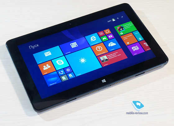 К нам на обзор приехал топовый аппарат на Core-i5 4300Y. Количество оперативной памяти может быть 2, 4 или 8 ГБ. Твердотельный накопитель имеет емкость от 32 до 256 ГБ. В конфигурации для модели 7130 аккумулятор 37 Втч. Есть еще небольшие различия, однако они не столь существенны. ПозиционированиеКак мне кажется, позиционирование ноутбуков на операционной системе Windows вполне ясно: устройства на все случаи жизни для тех, кто привык к среде «окон» или нуждается в специализированных приложениях, работающих только на «винде». Позиционирование планшетов на ОС Windows для меня пока остается загадкой. Гаджеты получаются не сильно меньше ноутов, однако они, как правило, в чем-либо ограничены: слабое железо, нет полноценной полноразмерной клавиатуры, меньше различных портов и так далее. Собственно, Dell Venue 11 Pro – это типичный представитель «таблеток» на «оконной» системе: большой, относительно толстый и шумящий активным охлаждением. Впрочем, это не умаляет его достоинств: мощный процессор, емкий диск, хороший экран, наличие 3G. Дизайн, размеры, управляющие элементыВнешний вид Dell Venue 1 Pro достаточно привычный по другим моделям компании Dell. Откровенно говоря, кроме ультрабуков, у компании редко получаются красивые гаджеты, чаще всего они имеют примитивный дизайн. Я не говорю, что это плохо, просто высказываю свое личное мнение, основанное на тестировании некоторых продуктов фирмы.