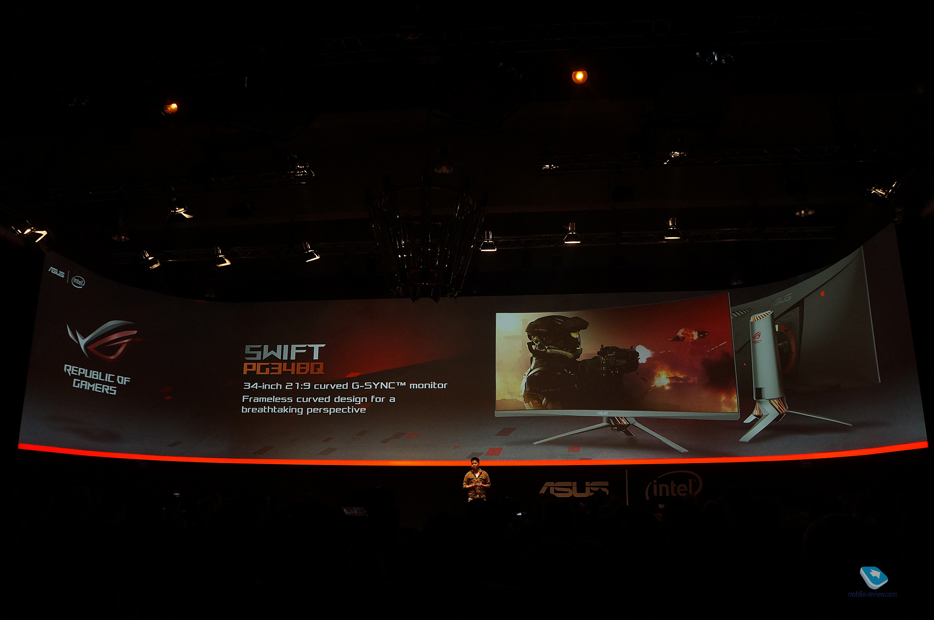 Swift PG348QНе мог не упомянуть этот шикарный монитор с диагональю в 34 дюйма, изогнутым матовым дисплеем и разрешением 3440х1440 точек. Картинка на нем выглядела просто потрясающе, прямо глаз не оторвать. Вот, правда, каких-либо подробностей о цене или сроках поставки пока нет. ЗаключениеВ Asus уже вторую выставку подряд показывают огромное число новинок, и не просто новинок, а действительно интересных моделей, многие из них я бы с удовольствием протестировал прямо сейчас, тот же новый AiO S или HDMI-стик, да даже роутер вызывает любопытство своими девятью двухдиапазонными антеннами. Ссылки по темеПоделиться: Мы в социальных сетях: Есть, что добавить?! Пишите... eldar@mobile-review.com