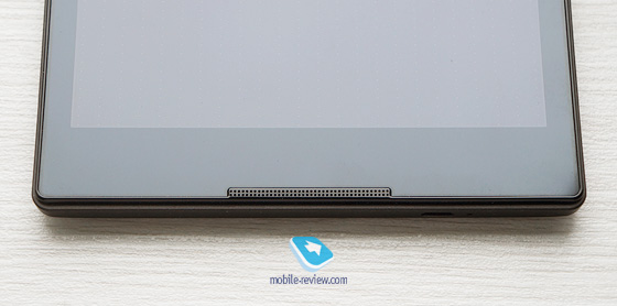 Большую часть лицевой стороны занимает восьмидюймовый дисплей. Над ним расположили глазок фронтальной камеры, датчик приближения, а также один из стереодинамиков. Второй же находится под экраном.
