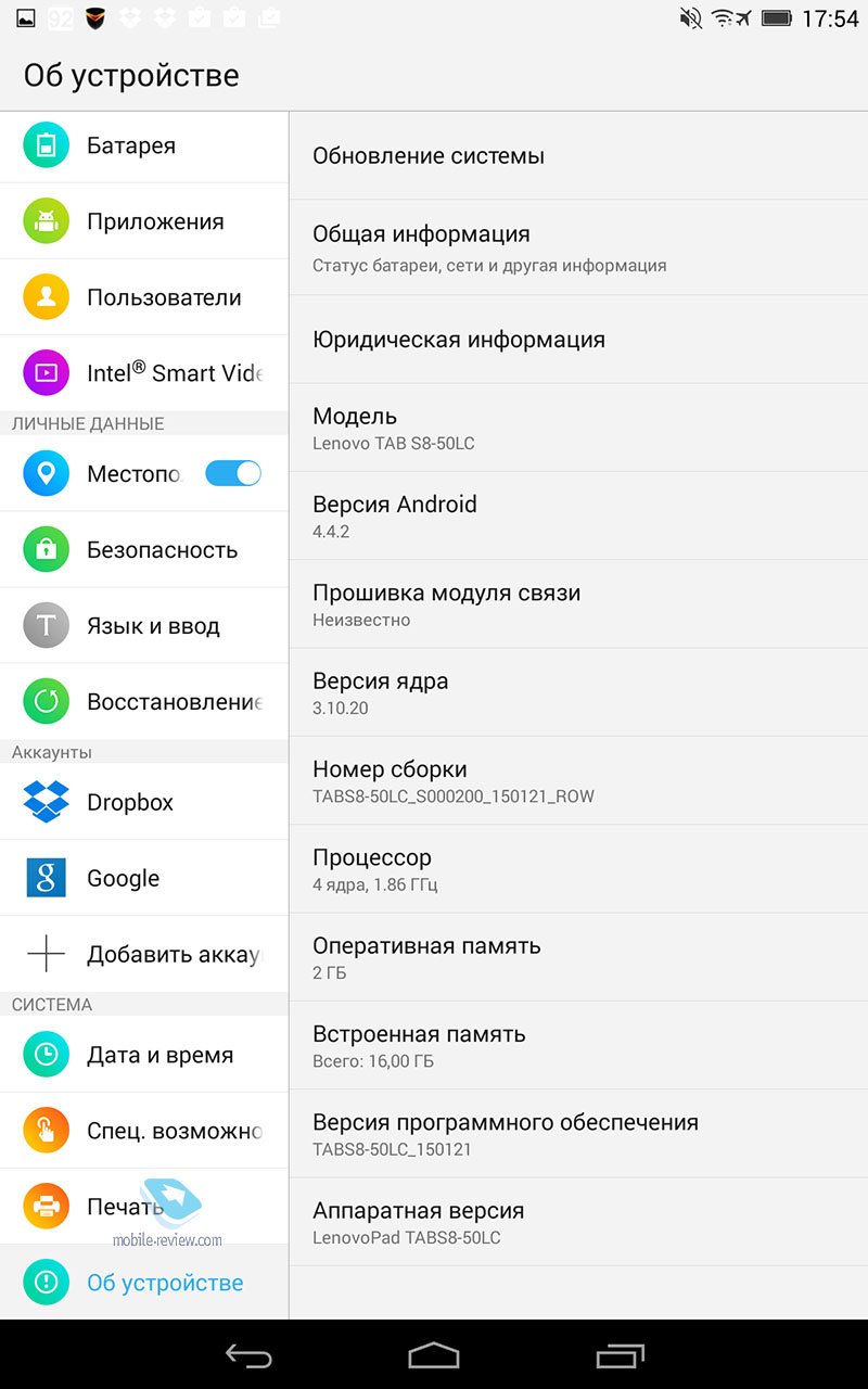 Если опять же сравнивать этот дисплей с MeMO Pad 8, то, на мой взгляд, у Tab S8 более насыщенная картинка, в то время как MeMO Pad 8 обладает более мягкими цветами. На самом деле, оба экрана очень хорошие, поэтому вы, скорее всего, не увидите между ними разницы. Дисплей в Tab S8 прекрасно подойдет и для чтения, и для игр, и для просмотра видео. Операционная системаАппарат работает под управлением Android 4.4.2 и фирменной оболочки Vibe UI от Lenovo. Эльдар Муртазин подробно рассказывал о ее возможностях, желающие могут пройти по ссылке ниже и прочитать тот материал. Vibe UI – довольно навороченная оболочка, но лично мне не нравится, как Lenovo изменили интерфейс стандартного Android. Однако важно помнить, что это лишь вопрос вкуса. Производительность