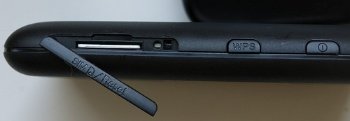 Снизу – кнопка включения, Wps, гнездо для SIM-карты с фиксатором и выталкивателем, кнопка Reset. Расположение кнопок на нижнем ребре непривычно, до сих пор мне попадались только сверху. Закругленные грани не позволяют роутер поставить на стол или подоконник.