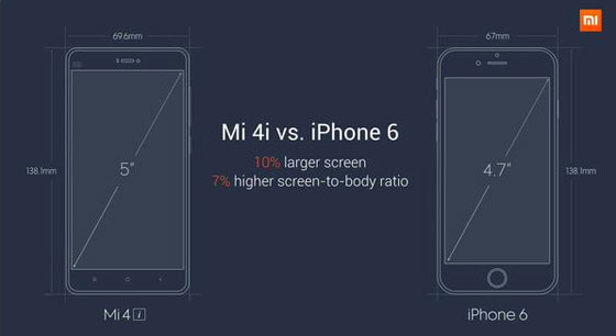 Забавно, что толщину и вес, в которых iPhone 6 выигрывает, в Xiaomi сравнивают с оригинальным Mi4.