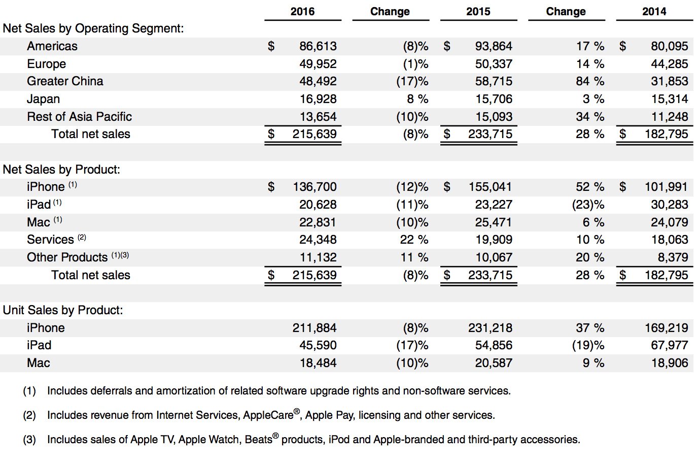 С другой стороны, отчетность материнской компании «ВымпелКом» можно найти вот тут, там есть и форма 20-F, то есть вы можете найти подробную информацию о вопросах, которые вас интересуют. И в этом аспекте российская отчетность Билайн становится не так интересна, хотя в ней и содержится множество любопытных моментов. Как правило, журналисты и заинтересованные лица не ориентируются в том, где искать информацию, уже на этом этапе они «теряются», как следствие, не имеют возможности даже увидеть первичную и общедоступную информацию компаний, проанализировать ее. Отсюда вытекает однобокая трактовка результатов, отсутствие многих интересных моментов. Отдельно хочу отметить, что существует также обсуждение финансовых результатов, когда компания проводит конференц-звонок с инвесторами и аналитиками. Какие-то звонки можно прослушать в реальном времени и даже задать вопрос, где-то можно только слушать. Это не всегда удобно, хорошо, что есть множество сервисов, которые расшифровывают записи таких звонков и публикуют их в сети. Для крупных компаний вы с легкостью найдете эту информацию, ее очень много, например, для звонков Apple можно увидеть ее вот здесь. Игра в цифры и отсутствие цифр – феноменальные продажиНикто не может заставить компанию сообщить штучные продажи тех или иных устройств, для производителя достаточно раскрывать оборот и прибыль, но он может не говорить о продажах в штуках или средней стоимости продаваемого устройства. Например, в Samsung давно отказались от раскрытия информации о числе проданных смартфонов, приводится только число всех устройств, то есть телефоны и смартфоны. Это дает определенную гибкость для сторонних исследовательских компаний в трактовке того, как много смартфонов было поставлено на рынок. Например, в Apple, напротив, рапортуют о числе поставленных iPhone, считая эту информацию выгодной для себя. Другой пример: запуская Apple Watch, в Apple не стали раскрывать продажи для этого устройства, отнесли его в категорию «Другие продукты», где часы существуют вместе с музыкальными плеерами, Apple TV и аксессуарами. Неуверенность в том, что Apple Watch не упадут после первых кварталов продаж, подтвердилась на практике, независимые компании отмечают резкое падение этого продукта в поставках на рынок. Но в Apple с первого дня говорили о том, что у часов феноменальный успех, они стали номером один на рынке умных устройств, номером два на рынке часов в денежном измерении. Это еще один трюк, когда от абсолютных чисел компания переходит к сравнительным характеристикам, выбирая для себя удобный формат, который подчеркивает «успех». Это всего лишь правильная работа с информацией, ее подача. Давайте оценим другой творческий подход к отчетности, на этот раз от Microsoft. В отчетности компания не приводит штучные продажи MS Surface, для этих планшетов только упоминается выручка, которая находится в районе одного миллиарда долларов! Это известный трюк, когда компания приводит цифру-заменитель и жонглирует восприятием. Если бы в Microsoft сказали, что продали миллион планшетов, то эта цифра не произвела бы впечатления, тем более что большинство компаний приводит свои продажи в штучном выражении. Сравнивая миллион проданных MS Surface с другими производителями, никто бы не сказал, что они успешны. Совсем другое восприятие у миллиарда долларов, это большие день