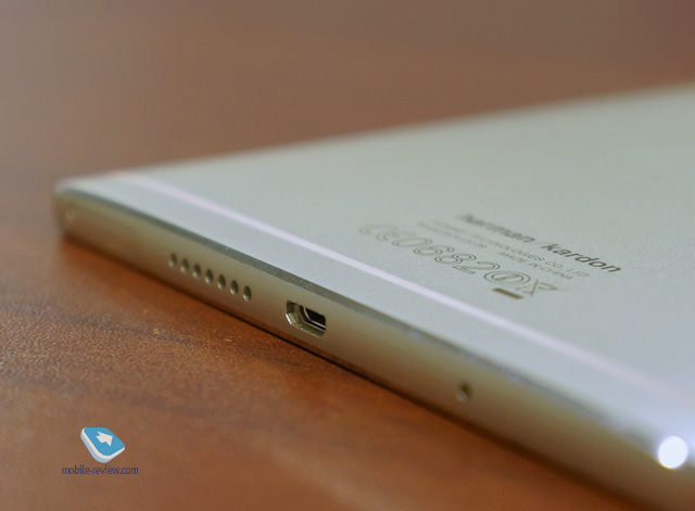 На нижнем торце находятся: динамик, micro-USB (странно, что не Type-C, поскольку все топовые модели Huawei имеют этот разъем), микрофон и металлические салазки для установки двух nano-SIM или nano-SIM+microSD. На верхнем – 3,5 мм и еще один динамик.