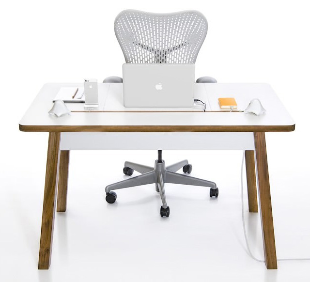 Ну и я начал размышлять вслух, что уже давно мечтаю о нормальном рабочем столе. Например, вот крутая штука у Bluelounge, стол так и называется, Desk.