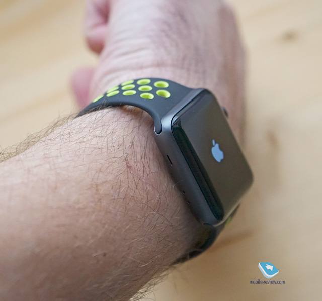 Цвета и размеры стандартные, вот несколько фотографий разных вариантов часов и ремешков. Для девушек маленькие часы, 38 мм, для мужчин 42 мм, у меня на руке как раз такие часы. Ремешок мне больше всего понравился классический для Nike, черный с кислотно-желтым, наверняка именно такие часы будут пользоваться наибольшей популярностью. Цены на версию 42 мм начинаются с 36990 рублей, напомню, обычные Apple Watch series 2 с корпусом из алюминия и такого же размера стоят 27990 рублей. Характеристики у часов совпадают: