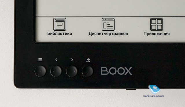С точки зрения дизайна здесь придраться не к чему, рамки вокруг дисплея не особо большие, материал фронтальной части - пластик, задняя часть из металла. На нижнем торце - кнопка включения, разъем microUSB для зарядки, слот для карты памяти microSD, разъем 3,5 мм. В кнопке включения установлен световой индикатор, он горит разными цветами в зависимости от происходящего с устройством. Например, в обычном режиме при включении загорается синий огонек, при подключении к USB - красный. Справа вверху находится шильдик с логотипом, тут же можно хранить и стилус. Дисплей книги индукционный, то есть на нажатия пальцем, ногтем не реагирует, нужно нажимать стилусом. Конечно, это создает определенные неудобства, но такой уж тут экран. Кнопки перелистывания - под дисплеем, тут же кнопка возврата назад и кнопка вызова меню.