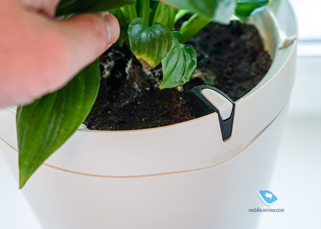 В любом случае, сразу после покупки вы можете ехать на рынок за правильной землей, подобрать под размер горшка куст роз или что-то еще, посоветоваться с продавцами, какое лучше взять удобрение, дома все это совместить и получить красивую картинку на окне или где-то еще. В горшке есть датчики освещения, замеряется влажность почвы, количество удобрений и температура. В последнее время у меня почему-то индикатор уровня удобрений горит красным, в таком случае нужно полить воды из лейки вокруг цветка. Хотя откуда тут удобрения, ума не приложу, я ничего не добавлял.