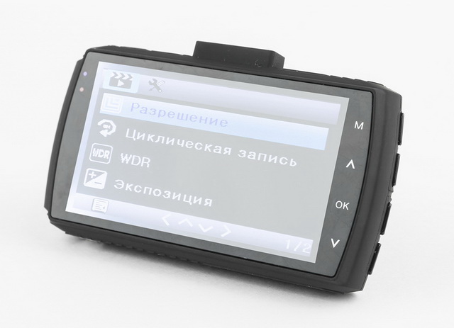 В AdvoCam всегда применяют в своих регистраторах собственную схему управления OneTouch («Одно касание»). Это значит, что доступ к наиболее востребованным функциям осуществляется путем одного-единственного нажатия на кнопку. То есть без многоминутных рысканий по интерфейсу. AdvoCam-FD4 – не исключение: одним нажатием здесь можно сделать фотографию, отключить микрофон и начать запись видео. Да и в остальном управление продуманное. Кнопка «M», самая верхняя, в зависимости от ситуации/контекста переключает режимы (съемка фото или видео), защищает файл от перезаписи или позволяет выйти в меню настроек. Клавиши со стрелками предназначены для навигации по меню и приближения/удаления. Кнопка «ОК» активирует затвор камеры при фотосъемке и включает/останавливает запись в режиме захвата видео.