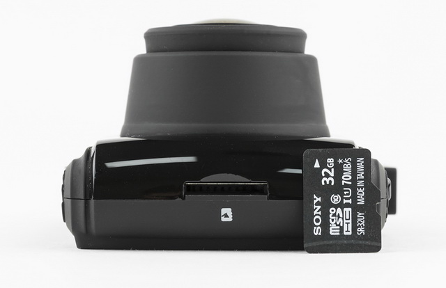 На правой грани корпуса расположился слот для карты памяти microSD. AdvoCam-FD4 может работать с картами емкостью до 32 ГБ.