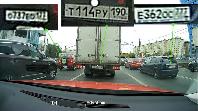 Как следствие, разработчикам удалось компенсировать использование недорогого чипа и интегрировать компоненты таким образом, чтобы, грубо говоря, выжать из них все соки. Все возможные и даже НЕвозможные. И на практике AdvoCam-FD4, который предлагается по цене 3 300 рублей, пишет видео скорее не как бюджетник, а как регистратор среднего класса за 5-7 тысяч рублей. Достаточно сказать, что дистанция читаемости номеров днем достигает 12-15 метров, ночью – 8-10 метров. Это результат, характерный скорее для моделей более высокой ценовой категории – от 5 000 рублей. Смотрите сами.