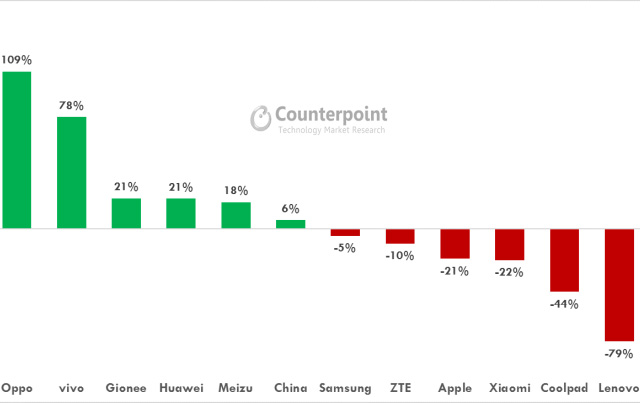 Теперь картинка для понимания положения Xiaomi в Китае, свежие данные от CounterPoint.