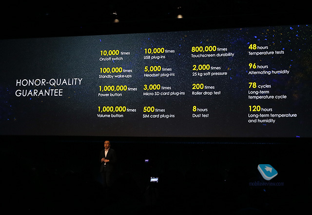 Модель Honor 6x - продолжение 5хИтак, мы добрались до самого главного, анонса Honor 6x. Во время презентации подспудно продвигалась мысль, как много усилий в Huawei прикладывают для тестирования устройств. Например, было сказано, что до запуска 10 000 смартфонов подвергались различным испытаниям. Звучит? Конечно, да. Но при планируемом объеме выпуска это абсолютно стандартный размер тестовой партии. Равно как и рассказы про различные тесты.