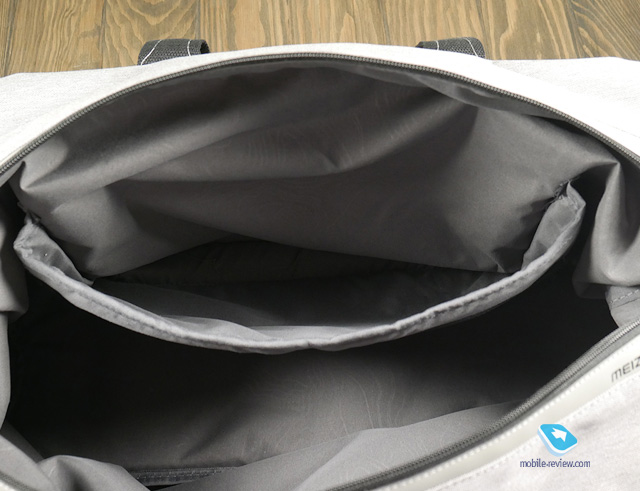 Именно маленькие карманы натолкнули меня на мысль, что это не совсем косметичка, ведь они очень напоминают отделения в рюкзаках для карточек памяти. Сумка выполнена из материала оксфорд, из него же сделаны рюкзак и другие аксессуары Meizu. Особенности этой ткани — специальное переплетение «рогожка», водонепроницаемость и защита от ветра. Подробнее про оксфорд можно почитать в Википедии.