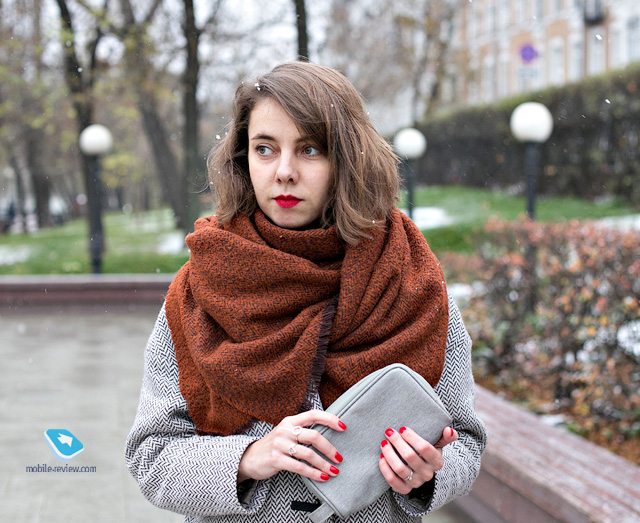 Но способ ношения и правда неочевиден, поэтому когда мы фотографировали девушек, они тоже с ходу не разобрались, какой стороной надевать сумку.