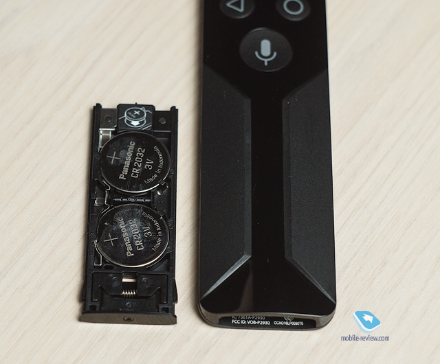Пульт ДУ имеет, с моей точки зрения, не лучшую эргономику. Во-первых, уже описал: случайно регулируется громкость. Во-вторых, чаще всего все-таки нужен джойстик, а не большая кнопка голосового помощника, но чтобы дотянуться до него, необходимо переложить в ладони пульт. В-третьих, не очень удобная форма корпуса. В нижней области имеется слот под две батарейки типа CR2032 3В.