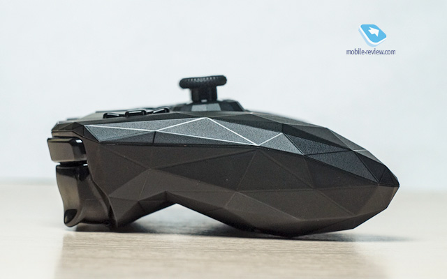 Контроллер выглядит вполне типично для таких вещей, однако текстура, да и рельеф похожи на полигональную сетку, напоминающую нам о том, что гаджет рассчитан на игрушки. Несмотря на такой внешний вид, контроллер держать удобно, никакого дискомфорта не ощущаешь. Поверхность матовая, слегка шершавая, все углубления и выпуклости сделаны так, что ладони точно обхватывают гаджет.