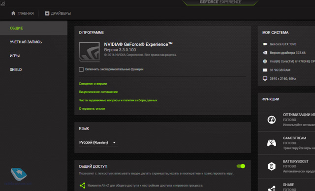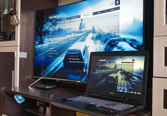 NVIDIA GameStreamЕще одна крутая фишка приставки NVIDIA Shield. Для теста запросил у наших друзей из MSI достаточно навороченный игровой ноутбук GT62VR 7RE DOMINATOR PRO на чипе Intel Core-i7, с двумя дисками SSD+HDD (500 МБ + 1 ТБ), с IPS панелью 15.6" UHD (3840x2160), 32 ГБ ОЗУ, графикой GeForce GTX 1070 8GB GDDR5. Ниже – параметры ноутбука. Гаджет работал очень быстро, с игрушками не было проблем даже в разрешении 4К и почти со всеми включенными графическими параметрами. Запускал Metal Gear Solid V: The Phantom Pain и, конечно же, GTA V.
