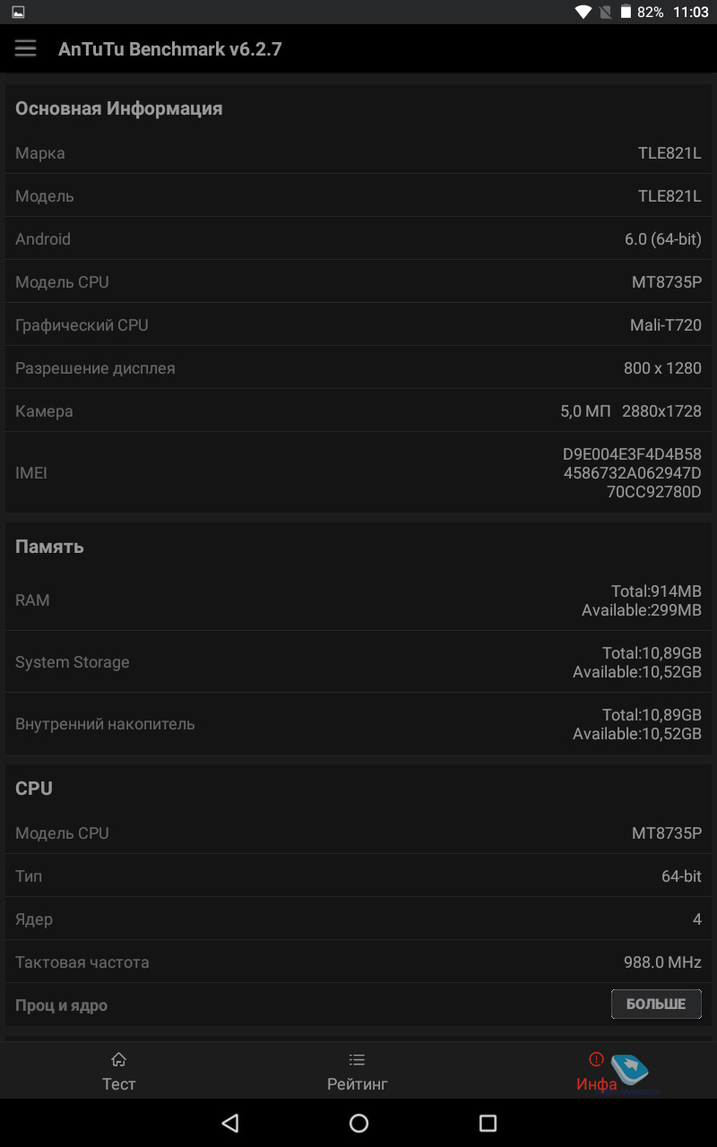 В тени АккумуляторПланшет компании Philips оснастили несъемной батарейкой на 5000 мАч. Производитель заявляет, что в режиме воспроизведения видео гаджет работает в течение 6 часов, а в режиме музыки – до 12 часов. По моим данным, аппарат «крутит» видео в формате MP4 HD чуть более 6 часов, а в режиме игр (простые) – примерно 4,5 часа. В среднем стоит рассчитывать на 5-6 часов активной работы или день в режиме «периодически проверить почту, Твиттер, социальные сети». Заряжается планшет от сетевого адаптера с выходным током 2А. Времени уходит 3 – 3.5 часа. Коммуникационные возможностиОдной из фишек данной модели стала поддержка LTE-частот: 800/900/1800/2100/2600 МГц. В 2G – B2/B3/B5/B8, а в 3G – B1 и B8. При помощи гаджета можно звонить, как по обычному смартфону, благо присутствуют и звонилка, и сообщения, и датчик приближения для отключения экрана во время звонка. В наличии Wi-Fi b/g/n («держит» стабильно, не обрывается), Bluetooth версии 4.0. За навигацию отвечает GPS. Координаты определяются быстро даже с «холодным» стартом. Память и карта памятиОперативной памяти здесь 1 ГБ, встроенной памяти 16 ГБ, и примерно 10 ГБ доступно пользователю. Поддерживаются карты памяти microSD до 64 ГБ. Нехватка оперативной памяти, конечно, чувствуется, но «жить» можно. КамерыВ планшет Philips TLE821L установили две камеры: основную на 5 МП с автофокусом и фронтальную на 2 МП. Более подробно расписывать нет никакого смысла, поскольку планшеты, как правило, оснащаются простыми модулями по типу «лишь бы было». Тем не менее, в данной модели есть хотя бы автофокус, который даст возможность нормально сфотографировать объявление, страницы книги, документы и тому подобное. «Фронталка» на удивление неплохая, в Skype картинка хорошая. Нюанс: обе камеры сильно приближают. Видео записывается в разрешении HD. Картинка адекватная, присутствует автофокус. Примеры фотографий Производительность и программная платформаВ этом планшете используется чипсет компании MediaTek модель MT8735: 64-бит, 4 ядра, ARM Cortex-A53, частота 1.3 ГГц. В Antutu набирает смешные 24 000 балла. Графика ARM Mali-T720, способная запускать простые игрушки и почти любого формата фильмы в разрешении до 720р. В качестве системы – Google Android версии 6.0 без каких-либо оболочек. Работает не слишком шустро, но и явных тормозов не чувствуется, без микролагов. В браузере есть легкая медлительность, после загрузки страницы листаются нормально, мультитач адекватный. Главное, чтобы в фоне не было никаких обновлений и загрузок приложений. МультимедиаВ планшете Philips установили два динамика громкой связи. Они имеют среднюю громкость – для видеоконференций вполне подойдет. Громкость в наушниках высокая, качество, на удивление, мне понравилось: прослушиваются даже басы. Как ни странно, но в TLE821L вы найдете FM-радио. Для его работы необходимо подключить наушники (чувствительность неплохая). Видео понимает почти во всех возможных форматах 720р и 1080р (только при невысоком битрейте). ЗаключениеДумаю, для начала стоит попросить отойти от клавиатур подальше хейтеров и любителей Aliexpress. Да, знаю, вы уже нашли лучший планшет за $30 и вполне им довольны :) Данная модель сейчас продается за 10 000 рублей. Дороговато. Гаджет очень простой с точки зрения производительности, его ключевые функции: поддержка 4G, возможность отправлять СМС и звонить, как по обычному смартфону. Вполне подойдет тем, кому нужен быстрый мобильный интерн