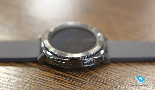 Корпус выполнен из нержавеющей стали 316L, разбить или поцарапать его тяжело, часы качественно собраны. Обратите внимание, что, в отличие от предыдущих моделей, в Samsung отказались от маркировки IP68. Чтобы подчеркнуть разницу, на корпусе указывается «Water Resistant 50 M», в описании говорится про 5ATM. В реальности это означает, что с часами можно плавать, нырять на небольшую глубину, но не погружаться с аквалангом, так как работоспособность в этом случае не гарантируется. Также как в S3 Frontier, поддерживается стандарт MIL-STD-810G, который гарантирует защиту от ударов, вибрации и температуры. Точные параметры измерений остаются неизвестными, сам стандарт описывает достаточно широкие пределы работы, но нужно знать одно: если часы сломаются, то к этому моменту вы уже не будете в состоянии оценить этот печальный факт, вы поломаетесь намного раньше. То есть, для повседневной жизни защита таких часов избыточна, но упорные люди наверняка смогут сломать экран, например, налетев на гвоздь. Сделать это можно только при большом везении, случайно разбить такие часы крайне маловероятно. Поворотный ободок (безель) позволяет осуществлять навигацию по часам, есть две клавиши на правой стороне (верхняя – это возврат на один уровень). В корпусе есть пара микрофонов, но для звонков использовать часы нельзя, только для голосовой диктовки.